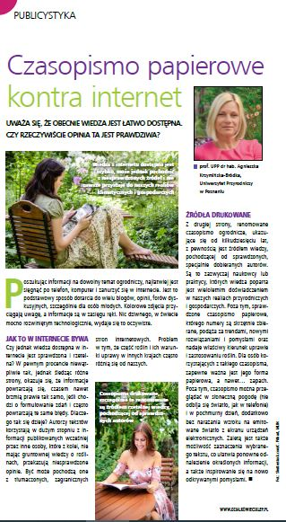 ● Poszukując informacji na dowolny temat ogrodniczy, najłatwiej jest zanurzyć się w internecie. Czy jednak taka wiedza jest zawsze sprawdzona i rzetelna? Podkreślamy znaczenie renomowanych, drukowanych czasopism ogrodniczych, które są źródłem wiedzy pochodzącej od sprawdzonych, specjalnie dobieranych autorów, z doświadczeniem i praktyką w naszych realiach przyrodniczych.