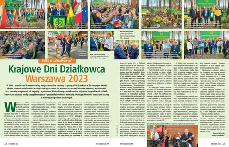 ● Chcecie być na bieżąco? Czytajcie „Wiadomości”! „Tylko w działkowcu” znajdziecie aktualne informacje na temat wydarzeń w Związku i w ogrodach! W tym numerze: „Krajowe Dni Działkowca Warszawa 2023”.