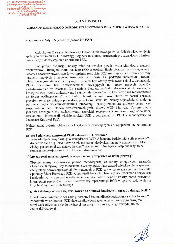 STANOWISKO Zarządu ROD im. A. Mickiewicza w Nysie w sprawie istoty utrzymania jedności PZD2026-03-232026-03-23/wp-content/uploads/ozpzd-logo.svgOZPZD/wp-content/uploads/ozpzd-logo.svg200px200px